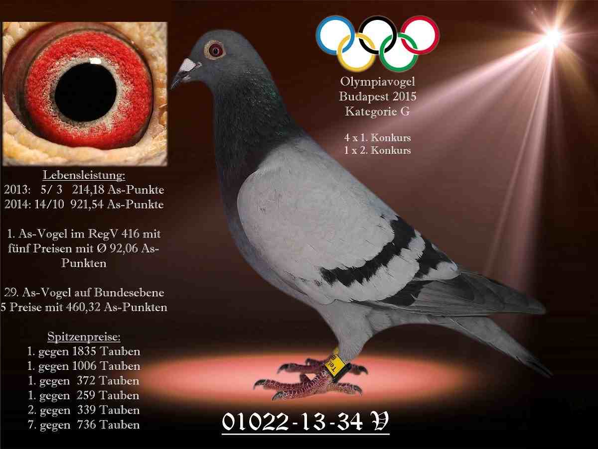 Der „OLYMPIC BUDAPEST“ war Olympiade-Vogel 2015 in Budapest und wurde 1. AS-Vogel im RegV 416. Er flog selbst 4 x den 1. Preis. Selbst Vater und Grossvater von 8 x 1. Preis.