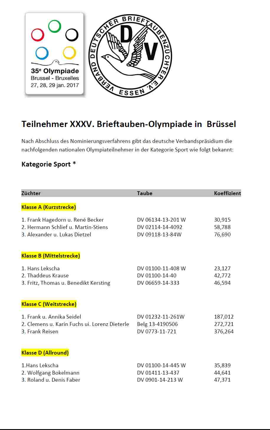 Deutsche Teilnehmer OLYMPIADE 2017 Kategorie Sport…