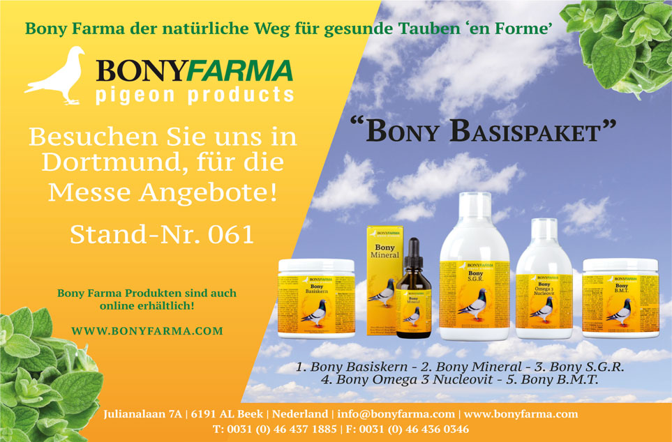 Taubensport ist ein schönes Hobby. Bei Enttäuschungen und Rückschlagen sind wir aber viel zu schnell geneigt, Hilfe im Medizinschrank zu suchen. Dies ist nicht unbedingt verkehrt, wir sollten aber über gute Mittel verfügen. Das ist der springende Punkt. Ich bin jetzt seit vielen Jahren dabei. Oft habe ich festgestellt, daß ein Mittel, das vom „Hören-Sagen“ bei diesem oder jenem gut geholfen hat, deswegen auch bei den eigenen Tauben verwendet wurde. Leider oft ohne das gewünschte Resultat. Wenn die Not hoch und der Wunsch nach Preisen stark genug ist, wird auch jenes Mittel benutzt, das beim anderen Taubenliebhaber doch auch geholfen hat. Wenn dann nach vielem Hin und Her doch der Gang zum Tierarzt gewählt wird, ist die Infektion schon soweit fortgeschritten, daß nicht nur die Atemwege angetastet sind, sondern auch die Basisabwehr der Tauben einen heftigen Rückschlag erlitten hat. Wenn dann auch das Rezept des Tierarztes nicht schnell hilft, ist das Vorurteil wieder mal bestätigt: auch die Tierärzte haben keine Ahnung. Natürlich läuft es nicht immer so ab – zum Glück nicht. Es gibt viele Taubenliebhaber, die sehr gut wissen, was sie tun. Für diese Taubenliebhaber schreibe ich jahrein, jahraus Rundbriefe, in der Hoffnung, selbst, und mit unserer Klinik, einen guten Beitrag an dieses schöne Hobby zu liefern. Wie oben schon beschrieben, nimmt die Einsicht, daß die natürliche Arbeitsweise die Basisgesundheit von Tauben verbessert, zu. Was aber ist eigentlich diese natürliche Arbeitsweise? In allererster Linie bedeutet es, gutes Futter zu verabreichen. Das erscheint erstmal logisch. Wenn wir der Regel „eine Taube kann alles aus ihrem Futter holen“ Glauben schenken wollen, müssen wir uns daran halten. Gutes Futter ist also für die Basis wesentlich. Damit können wir viele Rundbriefe füllen und dann gibt es wahrscheinlich noch viele offene Fragen. In diesem Rundbrief gehe ich davon aus, gutes Futter zu verwenden. Soll das bedeuten, daß damit alles gesagt ist? Daß die Leistungen dann doch von selber folgen? Taubensport ist meiner Meinung nach Topsport. Und heutzutage leben wir bezüglich des humanen Topsports nicht mehr in der Zeit der früheren Jahre. Die Tauben haben sich verändert und die Unterschiede zwischen Tauben sind nicht mehr so groß als vor Jahren. Die Flugzeiten stehen, mit Ausnahmen, nicht mehr offen. Es kommt jetzt auf kleinere Dinge an.