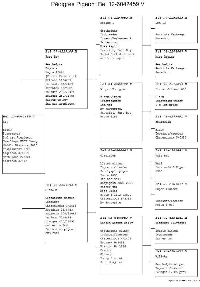 „ Geerinckx = Soontjes“ – was auch immer man sagt, der Name „ Geerinckx “ wird immer ein Synonym für die Soontjes-Tauben bleiben: Spitzenklasse vor allem auf der Kurz- und Mittelstrecke. Jedoch haben sie zu Beginn des Jahres 2000 vor allem auf der kurzen Mittelstrecke (300 km) und in den letzten Jahren in der schweren Mittelstrecke (500-600 km) zugelegt. Schnell wurde klar, dass die Geerinckx-Tauben hervorragende Erbqualitäten für Olympiatauben und nationale As-Tauben besitzen. Diese Entwicklung ging sehr schnell vonstatten und heutzutage reden wir über weltberühmte Tauben! Viele Taubenzüchter fuhren nach Wommelgem, um eine Nachzucht aus einem der beiden goldenen Pärchen zu ergattern, welches die Ausgangspaarung für weitere Verstärkung bildete. An der Basis gab es zwei super Linien: den „Gladiator“ und das weltberühmte Pärchen „Wittekop Sylvester x Willyke“ und die Linie der „Blauwe Yzeren“. Die Vereinigung beider Linien brachte erstklassige Tauben für 650 km-Flüge mit top Resultaten auf nationaler Ebene.