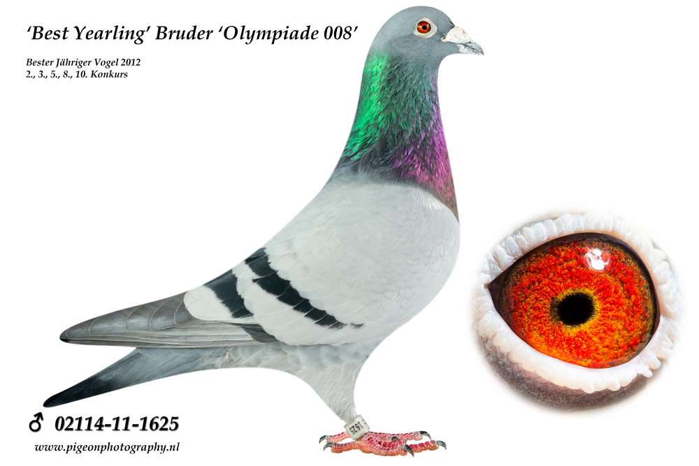 Hier beweisen sowohl der „OLYMPIADE 003“ als auch der „EURO“ (jetzt bei Eijerkamp) mal wieder, dass sie in der Briefaubenzucht diese Jahrhunderts Geschichte schreiben. Unzählige Nachkommen beweisen Jahr für Jahr ihre absolute Weltklasse in der Vererbung von Spitzenpreisen, nationalen AS-Tauben-Titeln und Olympiadeteilnahmen.