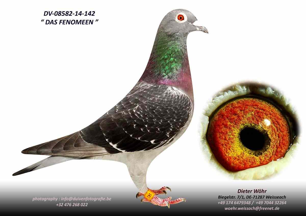 „Aus Ausnahmevererbern wieder Ausnahmetauben züchten“, so beschreibt Dieter Wöhr seinen erfolgreichen Zuchtweg. Es ist ihm bereits bei sehr vielen Tauben gelungen. Besonders eindrucksvoll hinterlässt das aktuelle AS-Weibchen 08582-14-142 „FENOMMEN“ diese züchterischen Erfolgsspuren.