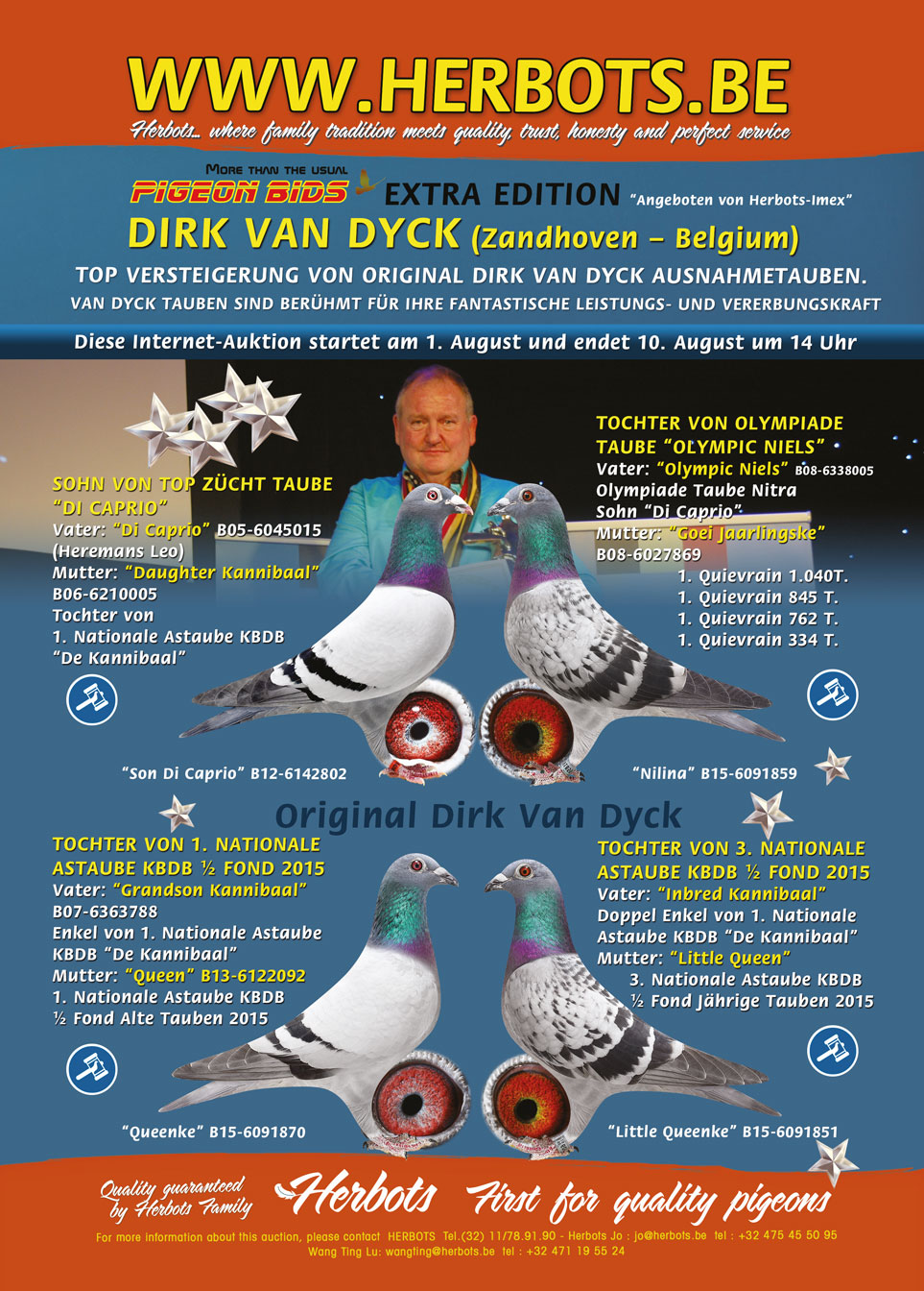 Eine so genannte Binsenweisheit wollte ich hier eigentlich nicht wiederholen. Die ist jedem Sportfreund bekannt, nämlich dass die gute Taube entscheidend ist. Doch gute Tauben sind oft sehr unterschiedlicher Herkunft. Es befinden sich in dieser Ausgabe von TaubenMarkt/Die Sporttaube u. a. Reportagen über Spitzenschläge, die an der Auktion “EUROPEAN SUPERSTARS Olympiade & As-Tauben Spezial 2017 !“ am Samstag, den 28. Oktober 2017 im Rahmen des 28. Int. TaubenMarkt in den Kasseler Messehallen teilnehmen. Vielleicht gelingt es Ihnen, dort eine Taube zu erwerben, die Ihren Vorstellungen entspricht und sie weiter in Zucht und Reise nach vorne bringt. Viel Erfolg auch dabei, weiterhin “Gut Flug 2017“ und “Freiheit im Taubensport!”