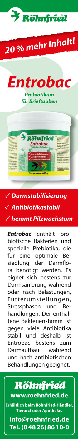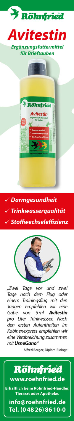 Sodann bringen wir unter der Rubrik “Aus der Wissenschaft” Ausführungen von Apotheker Otto Wack zu einem aktuellen Thema der noch laufenden Reisesaison. Die Flugstrecken sind länger geworden und die Frage stellt sich: “Was passiert beim Hungerstoffwechsel?” Fehl- und Mangelernährung und andere Ungleichgewichte an Nährstoffen führen zu gesundheitlichen Problemen unserer Brieftauben, nicht nur in dem Moment, in dem sie an einem Wettflug teilnehmen.