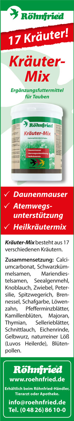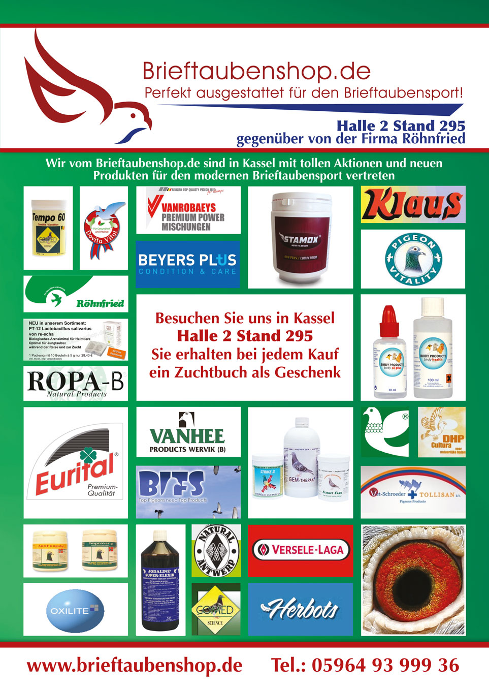 Und dass die Teilnahme am Int. TaubenMarkt Kassel sich für beide Seiten lohnt, gilt selbstverständlich nicht nur für die Tribünenflugveranstalter. Sie gilt schlichtweg für alle Aussteller und Besucher und sicherlich auch für den Verband Deutscher Brieftaubenzüchter. Der Verband wurde von Geschäftsführer Oliver Kreutzfeldt und mir eingeladen und wir hätten uns – auch zum Wohle unserer Besucher, die oft danach fragen – schon gefreut, wenn man teilgenommen hätte.