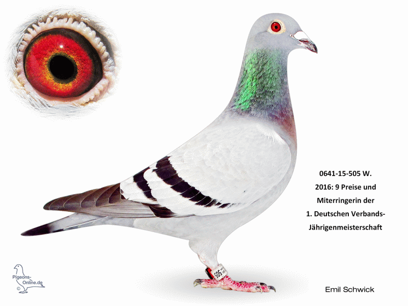 - 0641-15-505 W. – „Miss Germany 505“ (2016: 9 Preise, u. a. 9. RegV-Preis vs. 6.141 Tauben und 12. RegV-Preis vs. 5.011 Tauben) und 0641-15-506 V. – „Mister Germany 506“ (2016: 5., 7., 7. und 13. RegV-Preis vs. +/- 5.700 Tauben; 1. FG-Preis vs. 2.020 Tauben).