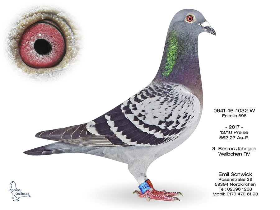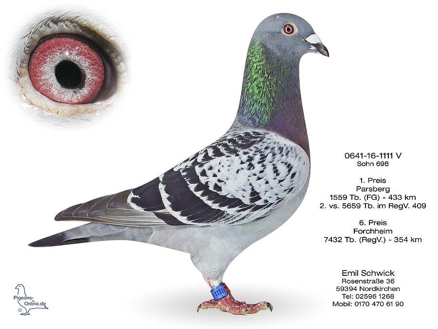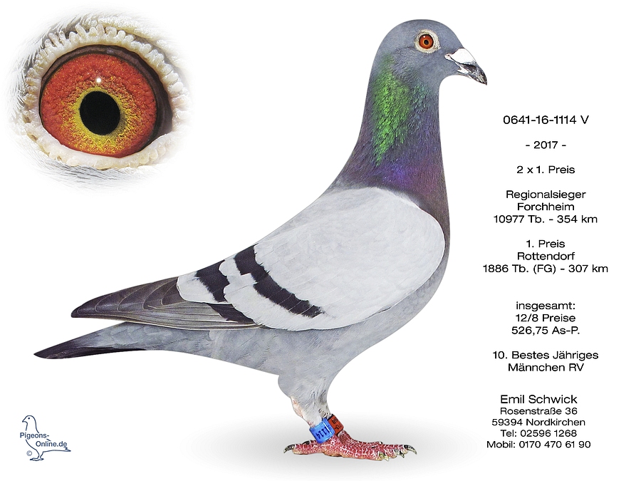 * Sohn 0641-16-1114 (Aktuell 2017: 1. RegV-Preis vs. 10.977 Tauben und 4. RegV-Preis vs. 6.663 Tauben).