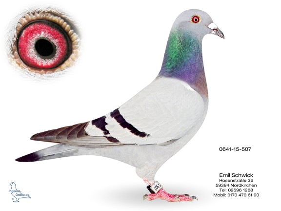 * Sohn 0641-10-68 ist Vater des Weibchens 0641-12-707 (2014: 10 Preise u. 1 x 1. Preis) und zur 0641-15-505 „Miss Germany 505“ (2016: 9 Preise, u. a. 9. RegV-Preis. vs. 6.141 Tauben und 12. RegV-Preis vs. 5.011 Tauben – Miterringerin der 1. Deutschen Verbands-Jährigenmeisterschaft 2016) sowie zum 0641-15-506 „ „Mister Germany 506“ (2016: 5., 7., 7. u. 13. RegV-Preis vs. +/- 5.700 Tauben; 1. FG-Konkurs vs. 2.020 Tauben; Miterringer der 1. Deutschen Verbands-Jährigenmeisterschaft 2016);