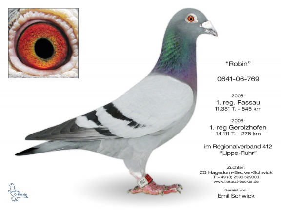 * Sohn 0641-06-769 „Robin“ (2006: 1. RegV-Preis Gerolzhofen (276 km) vs. 14.111 Tauben; 2008: 10 Preise u. 1 RegV-Preis Passau (545 km) vs. 11.183 Tauben);