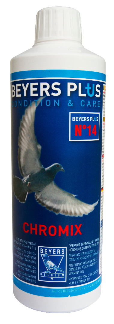 Es unterstützt den Stoffwechsel und verbessert die Kondition der Tauben. Chromix enthält MSM,