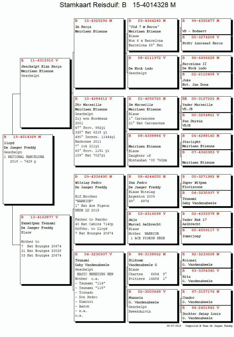 Der Internationale Sieger des Fluges ab Barcelona ist das Team De Jaeger Freddy aus Knesselare, Belgien.
