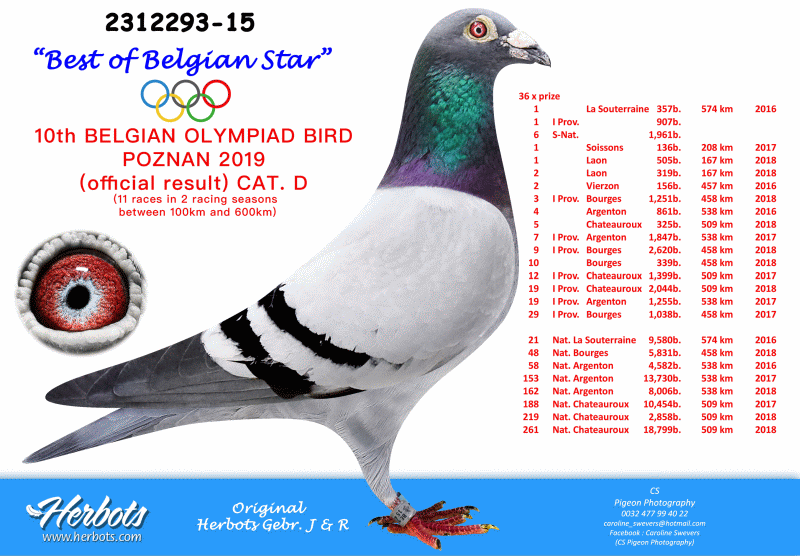 Es ist offiziell. Und jetzt zweifelt mit Sicherheit niemand mehr daran, dass das Jahr 2018 das erfolgreichste Herbots-Brieftaubenjahr aller Zeiten ist. Die Gebrüder Herbots klassifizieren sich mit sage und schreibe 7 Tauben bei den belgischen Olympiade-Tauben. Das gab es noch nie!
