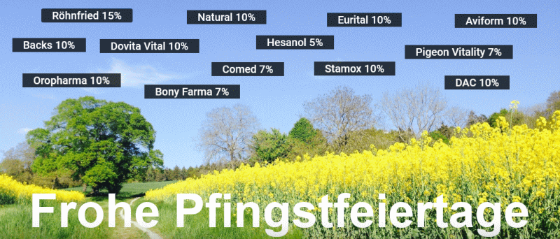 gültig ab 06.06.19 17:00 Uhr bis 12.06.19 24:00 Uhr – Super Preise und tolle Geschenke für Ihre Tauben im Wert von bis zu 18,91 Euro + Portofrei in Deutschland ab 39 €