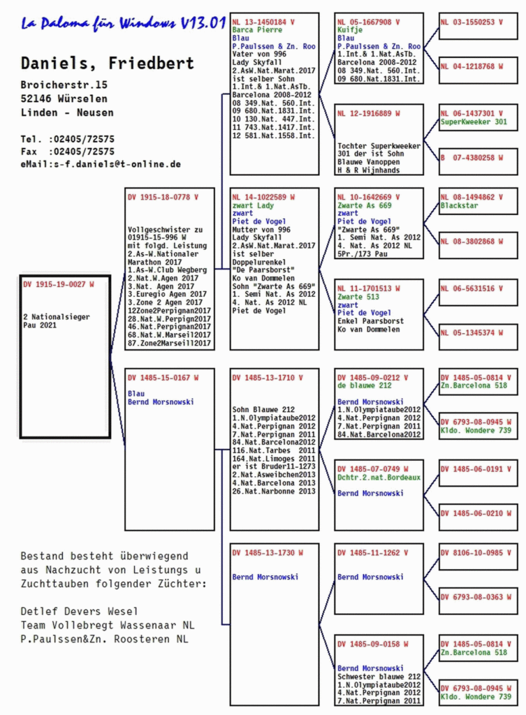 Die Taube wurde am Freitag, den 25. Juni um 18:59 Uhr mit einer durchschnittlichen Geschwindigkeit von 1305.38 Meter/Minute nach einem Flug von 919.922 km konstatiert.