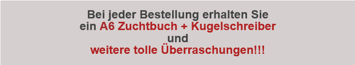 Sie finden viele tolle Rabatte in unserem shop. Zudem erhalten sie bei jeder Bestellung je ein Zuchtbuch und ein zusätzliches Geschenk.