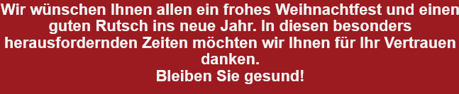 Wir wünschen allen Kunden ein frohes Weihnachtsfest und ein gesundes Jahr 2022 !
