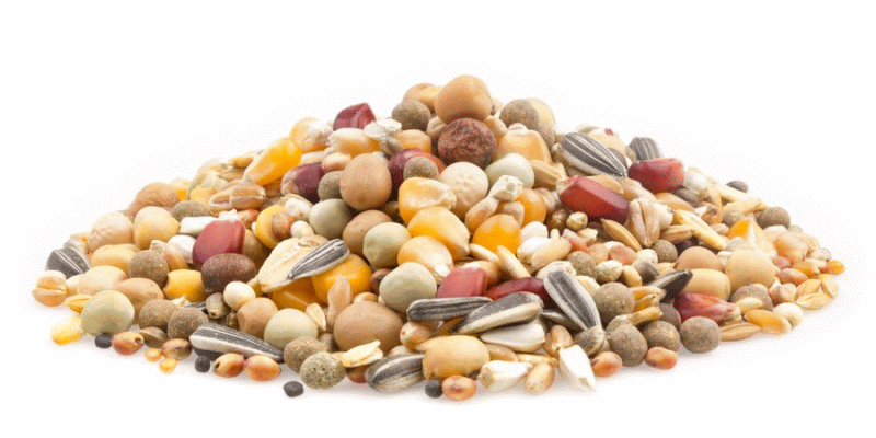 Weizen, Dari, Milo, Power-Erbsen, Perlmais, Mais, Vital Perle, Paddyreis, getoastete Sojabohnen, Kardi, grüne Erbsen, gelbe Erbsen, Haferflocken, Rotmais, Maple Peas, Hanfsaat, gestreifte Sonnenblumenkerne, Leinsamen, Wicken, Rapssaat, Hirse
