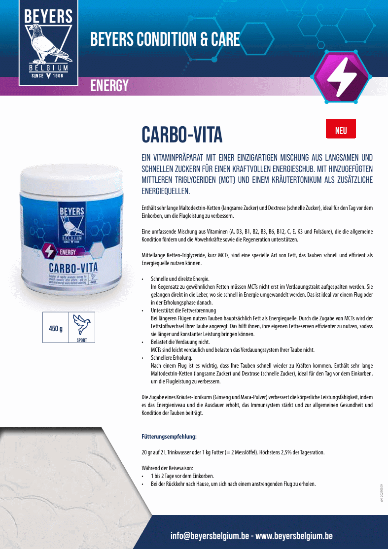 Nach einem Flug ist es wichtig, dass Ihre Tauben schnell wieder zu Kräften kommen. Enthält sehr lange