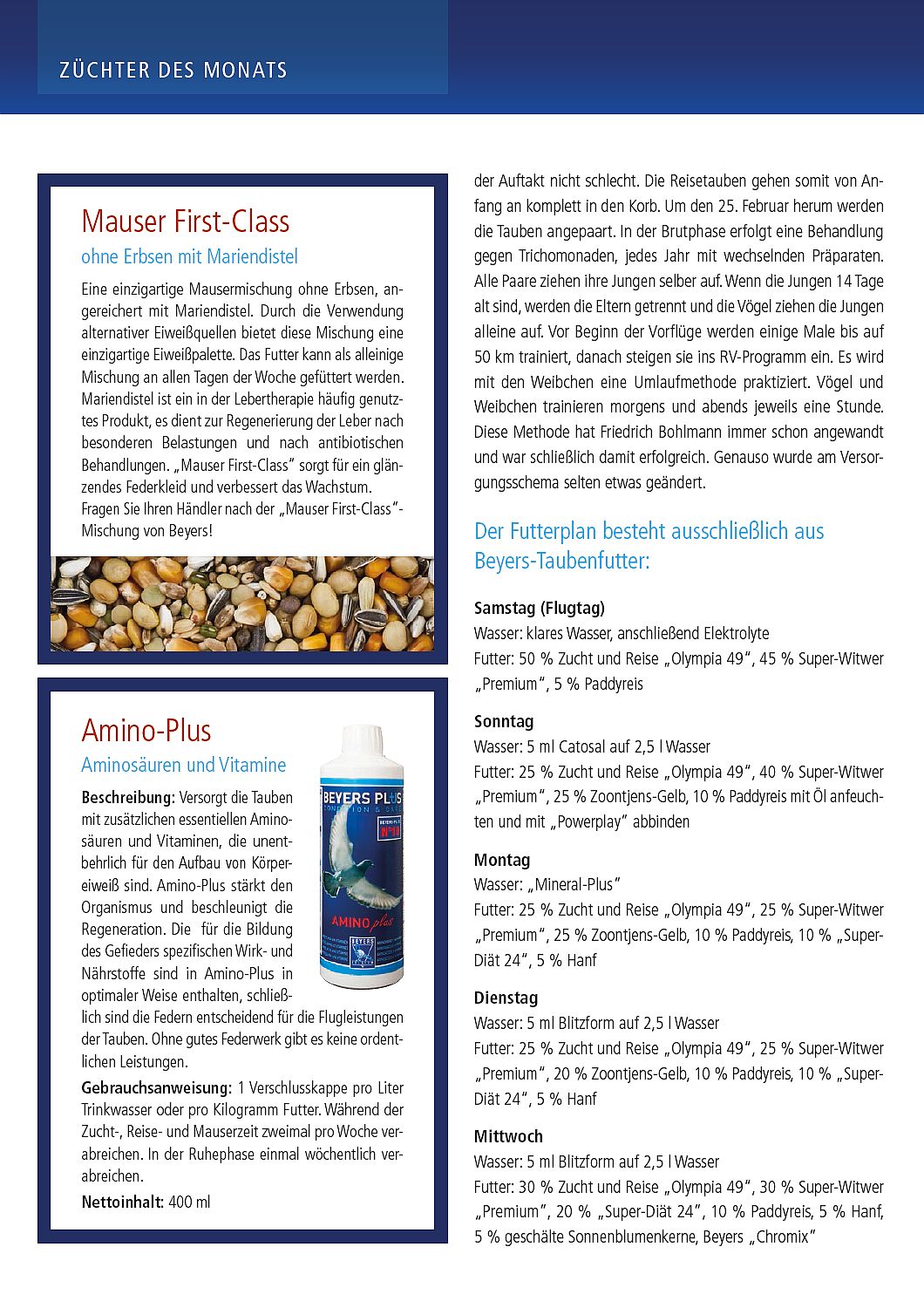 Wer nächstes Jahr Meister werden will, kann sich jetzt keine Fehler erlauben. Vermeiden Sie jetzt diese Fehler und vertrauen weiter auf die Beyers-Mischungen und Ergänzungsprodukte.