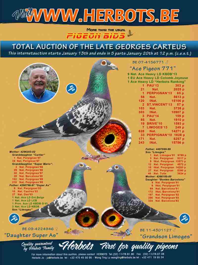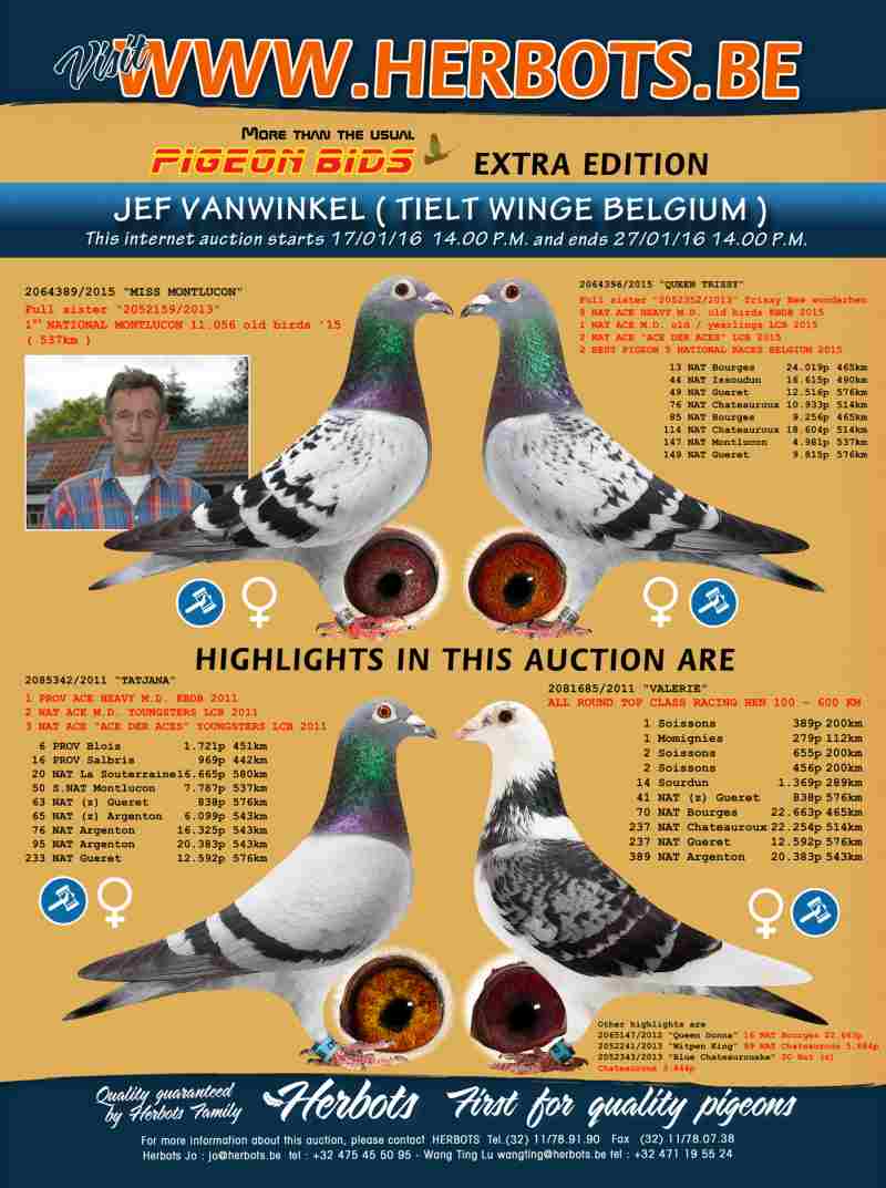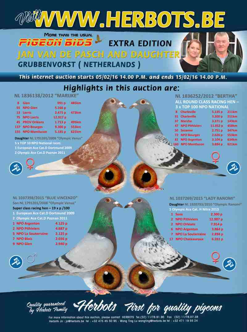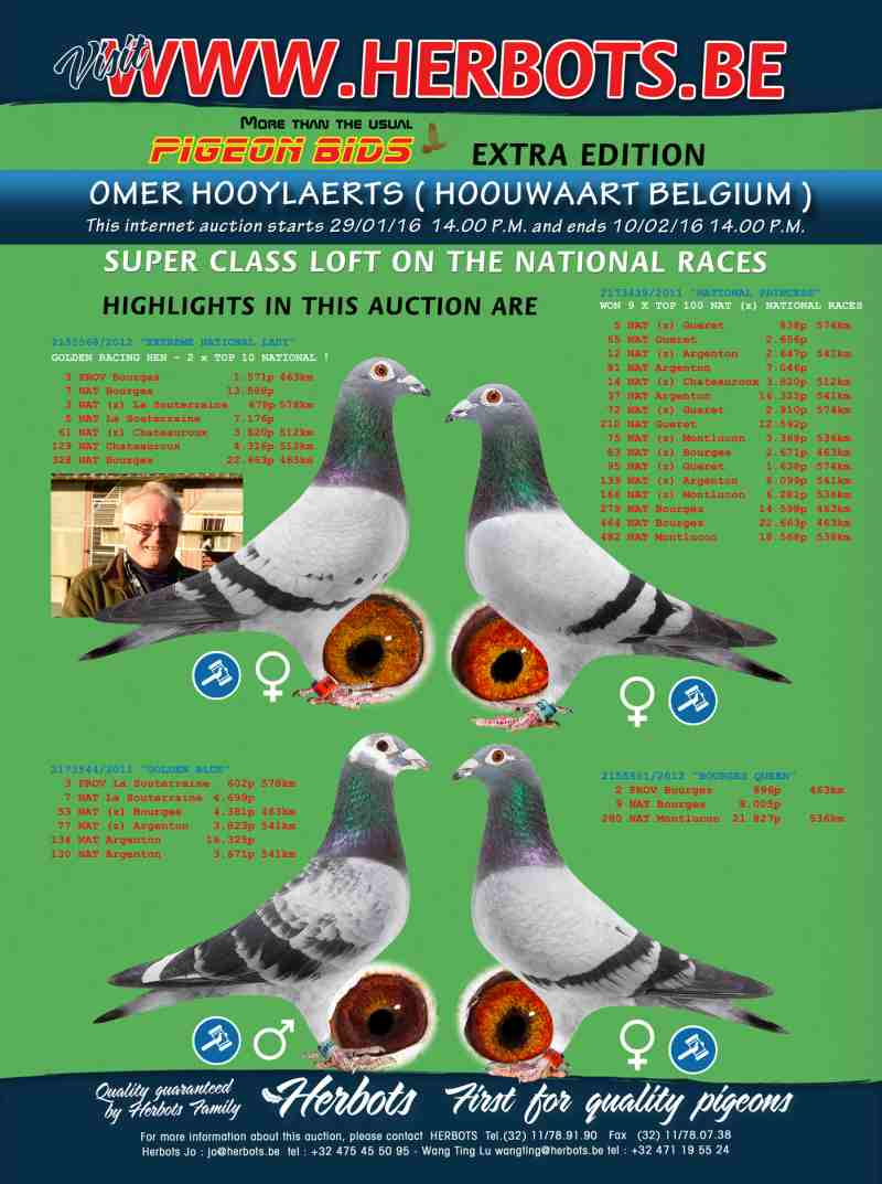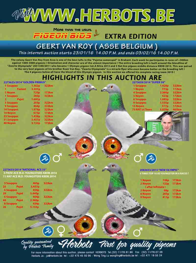 Pigeons Bids präsentiert TOP Auktionen: Original GEERINCKS, BRASPENNING Bert und Marco, Omer HOOYLAERTS, Geert van ROY, Jef VANWINCKEL, Jan van de PASCH und Tochter…