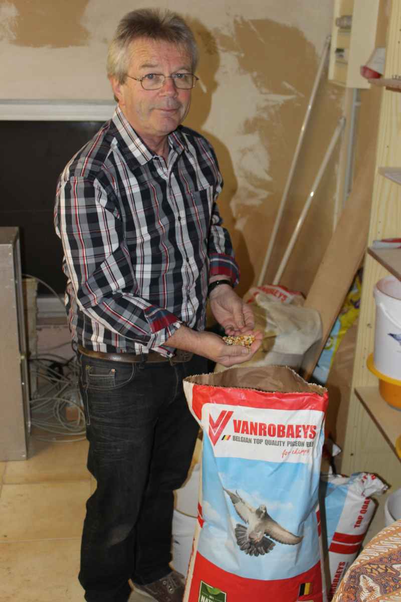 Seit Jahren kommen Mischungen aus dem Hause Vanrobaeys zum Einsatz. Im Vordergrund steht hier die Mischung „189 Premium-Power-Südost“. Diese Mischung wird nach der Rezeptur von Gerhard Homberg bei Vanrobaeys produziert. Lediglich bei den Weibchen wird das Futter mit einem Anteil von 20 % Paddyreis gestreckt. Ein Futter muss für Sportfreund Homberg zu 90 % keimfähig sein, dann ist das Futter top. Wenn die Tauben vom Flugtag nach Hause kommen, wird „Tollyamin forte“ verabreicht, dies in einer doppelten Dosierung. Das Futter wird am selben Tag mit „Naturmoor“ vom Teekontor und „Mineral“ von Tierarzt Marien abgebunden. Auch am zweiten Tag kommt „Naturmoor“ mit einem Eiweiß-Produkt unter das Futter. Am dritten und vierten Tag wird ferner ein Jod-Eisen-Produkt eingesetzt und damit ist die weitere Versorgung schon beschrieben. Gute Tauben und ein Optimum an Versorgung sind die Standsäulen, die man in Attendorn bestens im Griff hat.